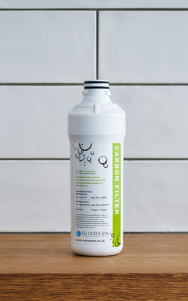 水道水の塩素を除去し、有効なミネラル分を残しながらおいしい水をつくります。
