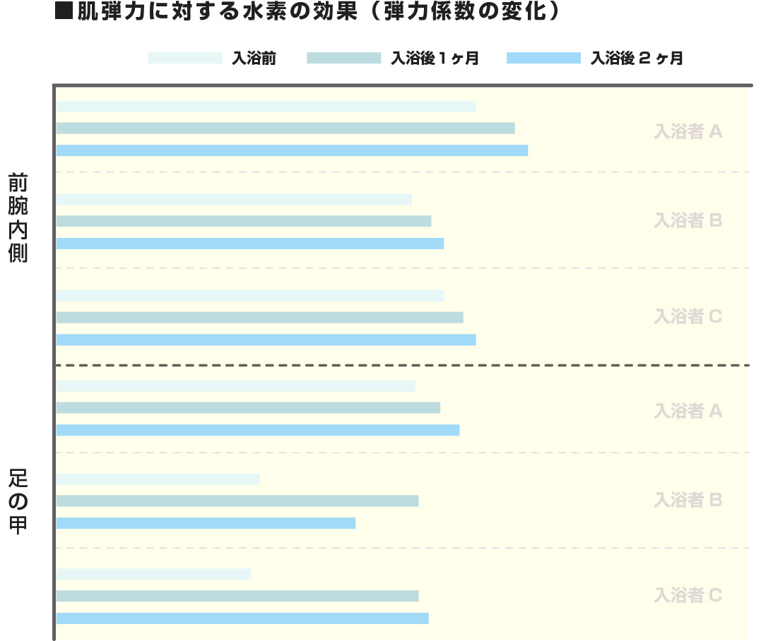 また、水素を含む浴槽水は、皮膚の弾力性や毛髪のツヤや