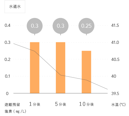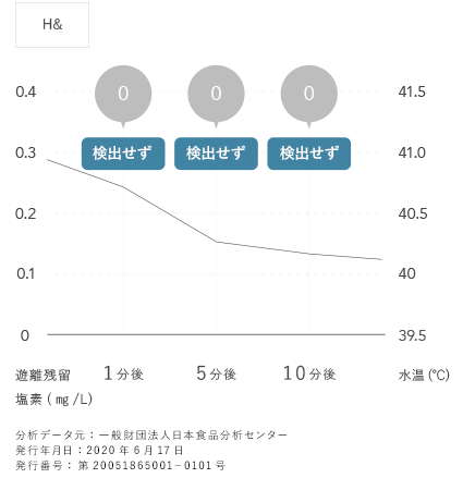 滑らかさを実感することができます。H&を投入するとお湯(約40℃)から塩素が検出されないことが測定結果で実証されました