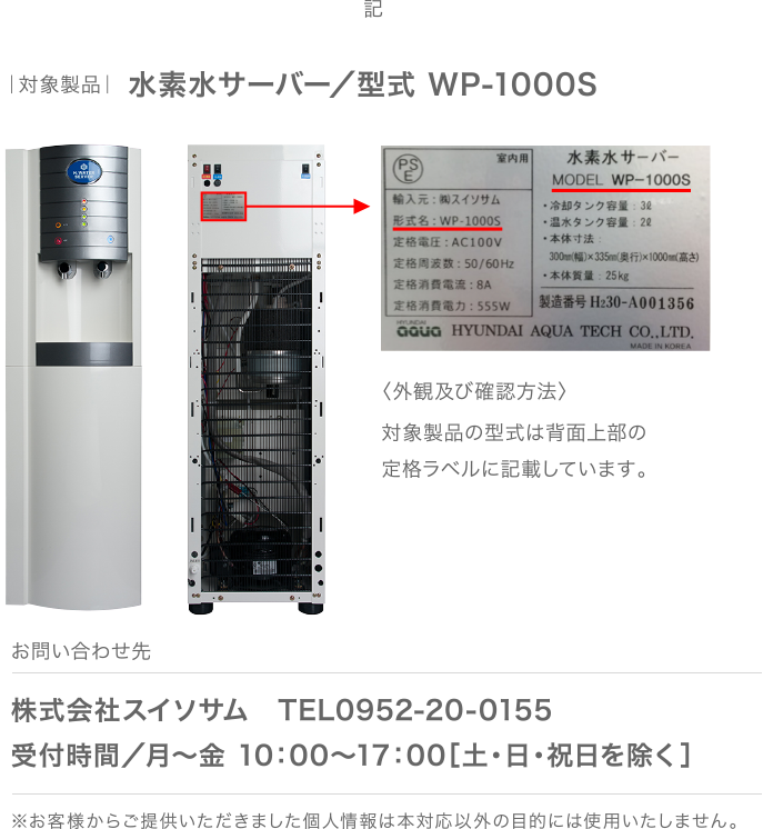 弊社が販売した「水素水サーバー」の一部の製品におきまして、設計不良により