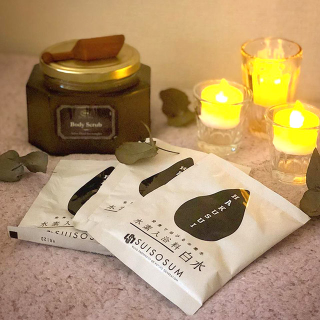 全身から水素を浴びれる高濃度水素バスの白水をベースにバスカクテル はいかがですか?
